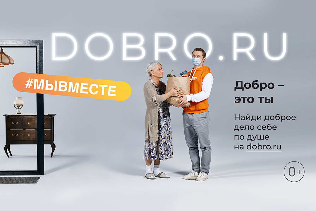 Основной слоган - «Добро - это ты». Главный ресурс в мире помощи - это сам человек, со своими интересами, предпочтениями, знаниями, умениями и навыками. У добра нет пола, возраста, цвета и границ. Добровольчество доступно для каждого, и любой вклад важен. В основе рекламных концептов - объединение различных видов волонтерской деятельности, от помощи пожилым, в частности помощь в доставке продуктов, до помощи животным и эковолонтерства, где участники объединяются, чтобы сделать мир вокруг себя лучше и добрее.